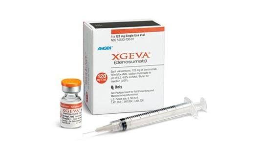 Denosumab, also known by the brand names Prolia and Xgeva, is a drug that’s injected to treat a variety of conditions, including osteoporosis, bone cancer, and giant cell tumor of the bone: